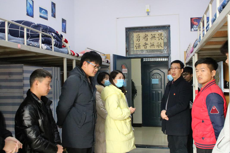 3月7日,开展“维护校园安全 营造和谐环境”为主题的开学第一课教育活动,党委书记刘嘉俊、副书记李刚及全体辅导员参与。活动中,刘书记从使命、责任、实干对员工寄予厚望。随后,相关负责同志对员工宿舍进行走访,深入了解员工返校后情况,排查安全隐患;积极引导员工调整身心状态,尽快适应校园学习生活。