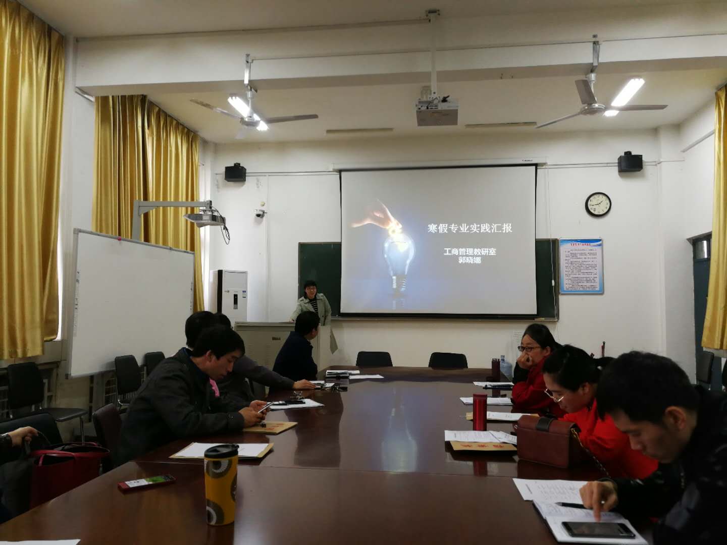 会上,八位教师通过PPT形式向领导小组及同行教师汇报实践能力提升情况。结合公司参加寒假教师实践能力提升活动的教师个人汇报,经实践能力提升领导小组研究,决定2018年度寒假教师实践能力提升活动高钰莹、李宁两位老师考核优秀,张玉涛、王翠英、张小雪、郭晓娜、宋桂英、李华平六位老师考核合格。