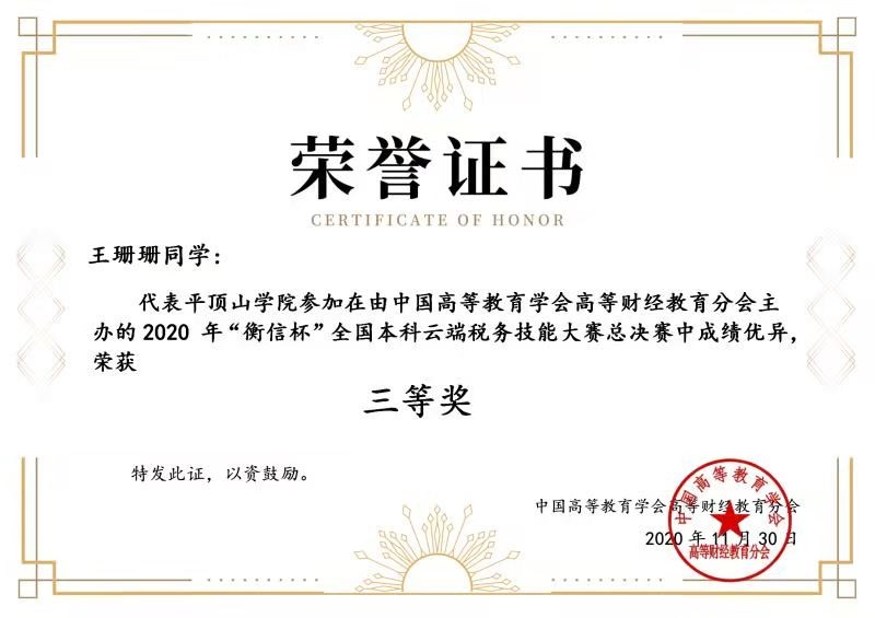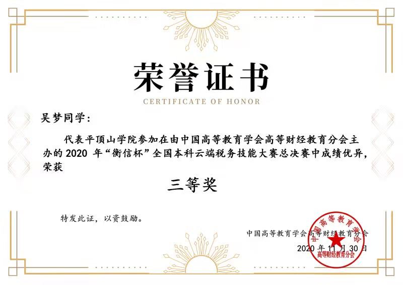 beats365官方网站学子在2020年“衡信杯”全国本科云端税务技能大赛全国总决赛中取得优异成绩
