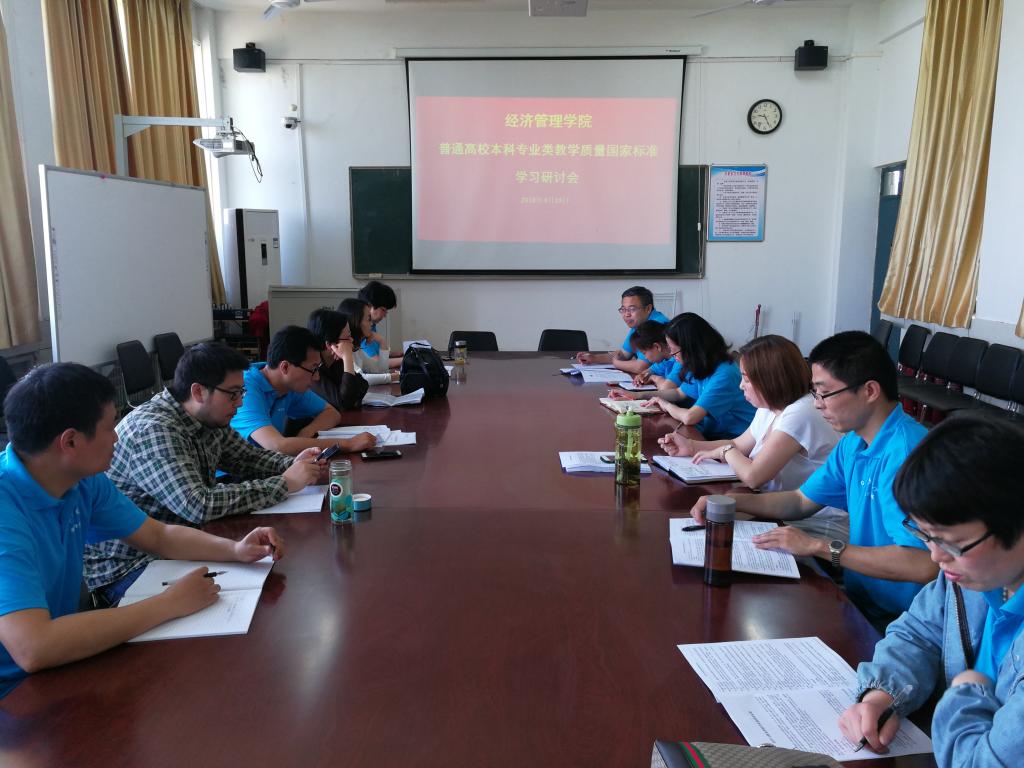 与会人员共同学习了教育部发布的《普通高校本科专业类教学质量国家标准》,对经济管理类六个专业的培养目标、培养规格、课程体系等内容和要求进行了学习讨论。会计学(含中外合作)、市场营销、工商管理、国际经济与贸易、保险学专业教研室主任针对本专业的实际情况和建设现状进行了简要梳理、汇报,并对照现有实际执行和国家标准之间的差距进行了分析。副经理李文同要求各教研室主任及专业带头人组织本专业教师认真学习研讨,深刻理解和掌握标准要求,对照标准找不足、寻原因,探索发展方向和“亮点”,形成研究性结论和材料,为下一步修订、完善人才培养方案,加强应用型人才培养和提升卓越商科能力构建新的课程体系、新的教学理念,改进教学方法、考试方式等一系列改革做好准备。