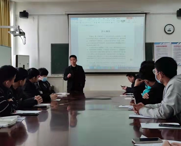 罗晨阳老师向同学们介绍了个人兴趣与科研方向,并向大家分享2018、2019级员工科研团队开展“老员工创业指导”、“绩效评价项目”等各类活动,最后向同学们提出入伙要求与期望。