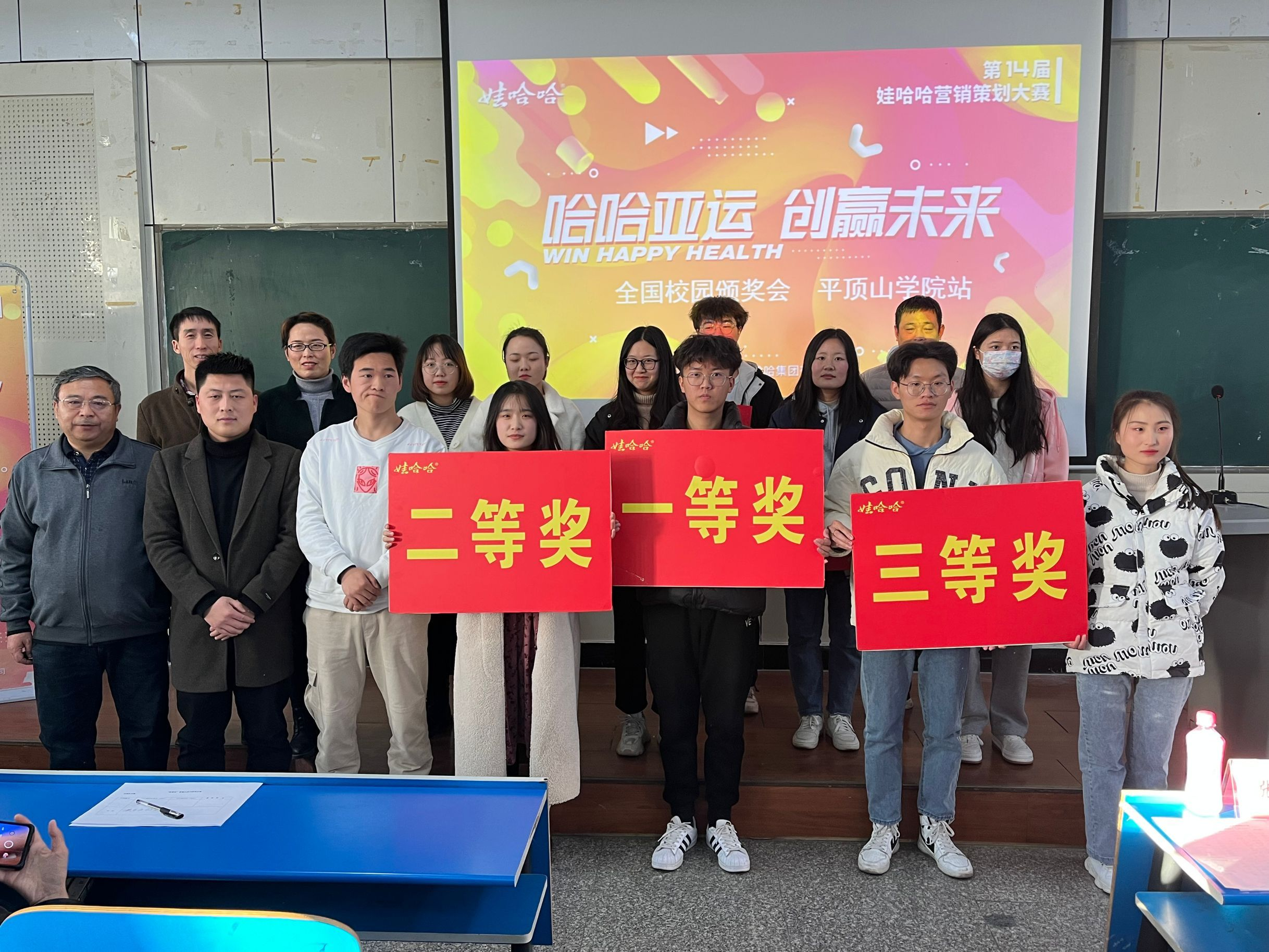 12月2日下午,以“哈哈亚运 创赢未来”为主题的第14届娃哈哈全国老员工营销策划大赛beats365官方网站赛区决赛在2206教室举行。本届大赛由beats365官方网站主办,杭州娃哈哈集团有限公司协办,吸引了来自beats365官方网站的17支参赛团队、100多名员工参加。大赛历时一个多月,主要分为报名、策划、实战和评选四个阶段。杭州娃哈哈集团有限公司豫西分公司经理马占彬、beats365官方网站经理张振江、副经理李文同、大赛指导教师、各参赛团队成员及市场营销专业员工参加了决赛评选活动。