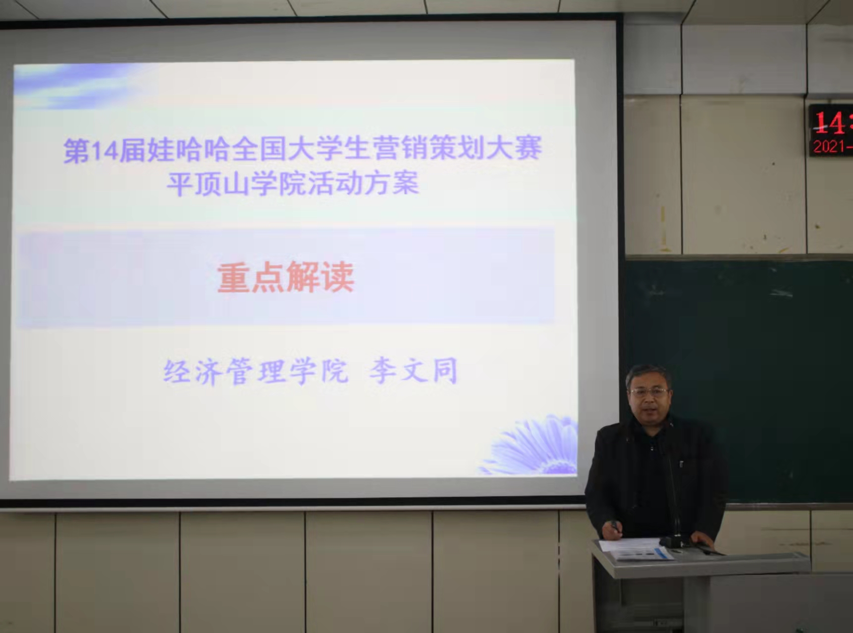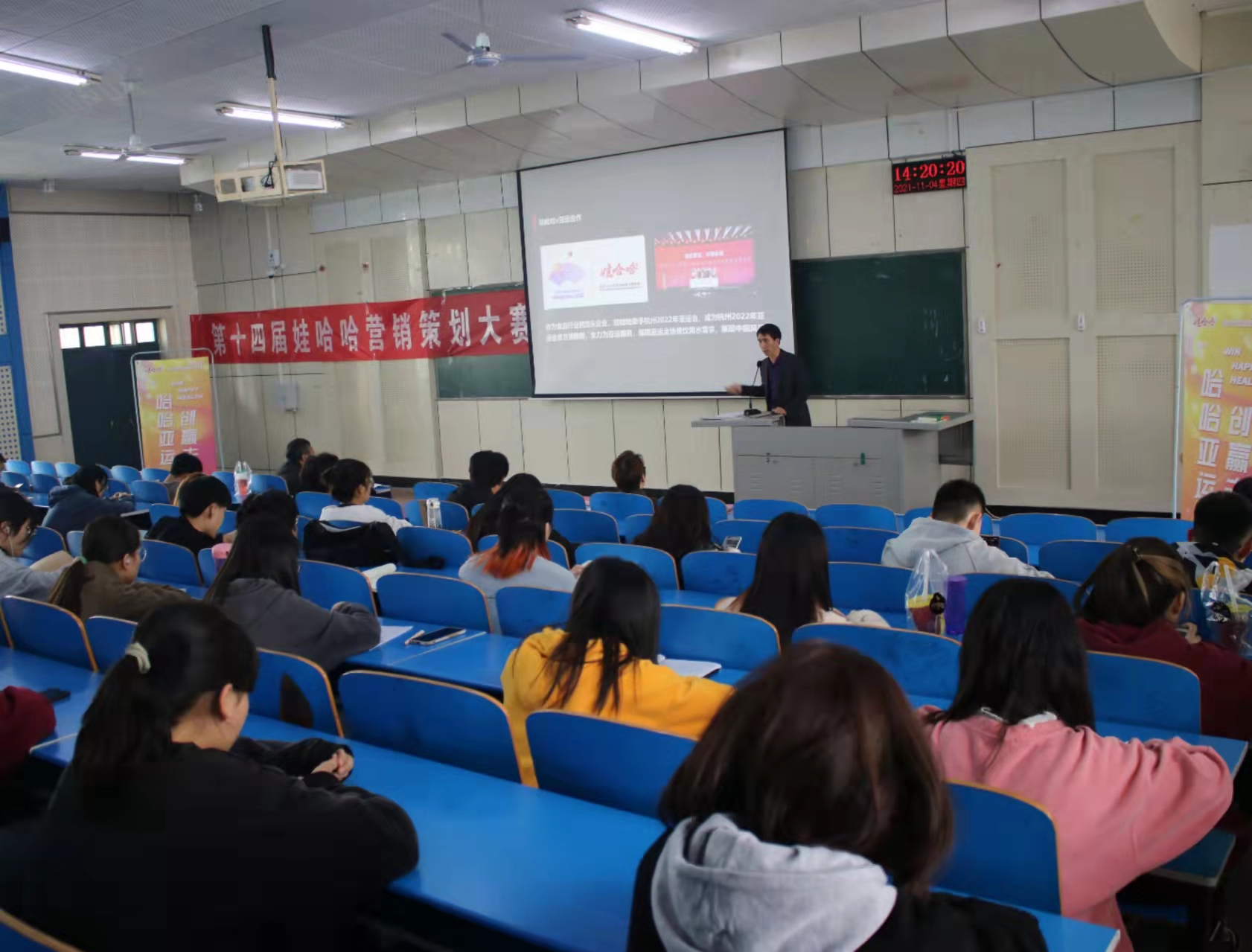 11月4日下午,由beats365官方网站承办、杭州娃哈哈集团有限公司协办的第十四届娃哈哈全国老员工营销策划大赛beats365官方网站校区赛宣讲培训会在2206教室举行。beats365官方网站负责人、市场营销专业教师及各个参赛团队的近150余名员工参加了本次宣讲培训。