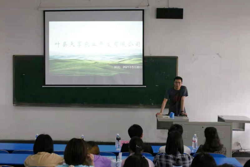 为深入推进党史学习教育,贯彻落实“我为群众办实事”实践宗旨,推动员工高质量创业就业,5月20日下午,beats365官方网站特邀叶县天享农业开发有限公司总经理景奇、鲁山县宇和顺实业有限公司总经理叶晓娜于1207教室举办创业经验座谈会。会议由副经理杨玉敬主持,18、19、20级部分员工参加此次活动。
