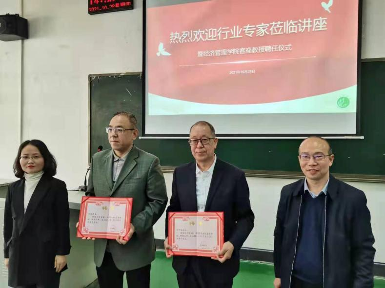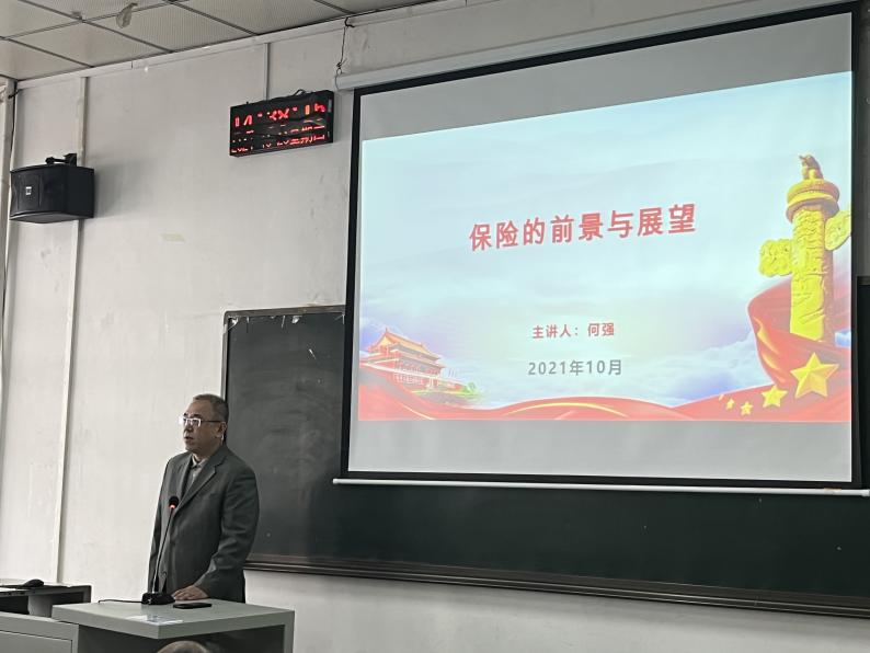 2021年10月28日下午,beats365官方网站邀请行业专家平顶山市保险行业协会秘书长何强、泰康养老保险公司平顶山区域中心总经理郑中生来校讲学。beats365官方网站经理张振江、副经理杨玉敬、保险学教研室全体教师及保险学专业近120名员工参加了此次活动。