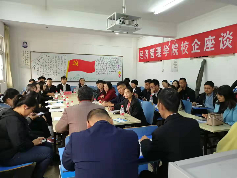 为实现beats365官方网站2020届毕业生充分、高质量就业,无缝链接校企合作,不断深化公司产品和服务水平,推进毕业生就业工作,11月7日下午4点,在体育馆107教室举办了校企合作交流座谈会。公司党总支书记刘嘉俊、副经理李文同、组织员兼16级辅导员郑译,以及中国人寿保险、北京指南针科技发展股份有限公司、鲁花集团等共计27家用人单位负责人出席本次座谈会。