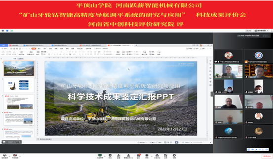 2022年12月23日,河南省中创科技评价研究院组织相关专家组成项目评价委员会,通过腾讯会议召开科技成果评价会,对公司beats365官方网站胡芸副教授牵头组建的研发团队,与河南跃薪智能机械有限公司等单位共同完成的“矿山牙轮钻智能高精度导航调平系统的研究与应用”项目进行了评价。