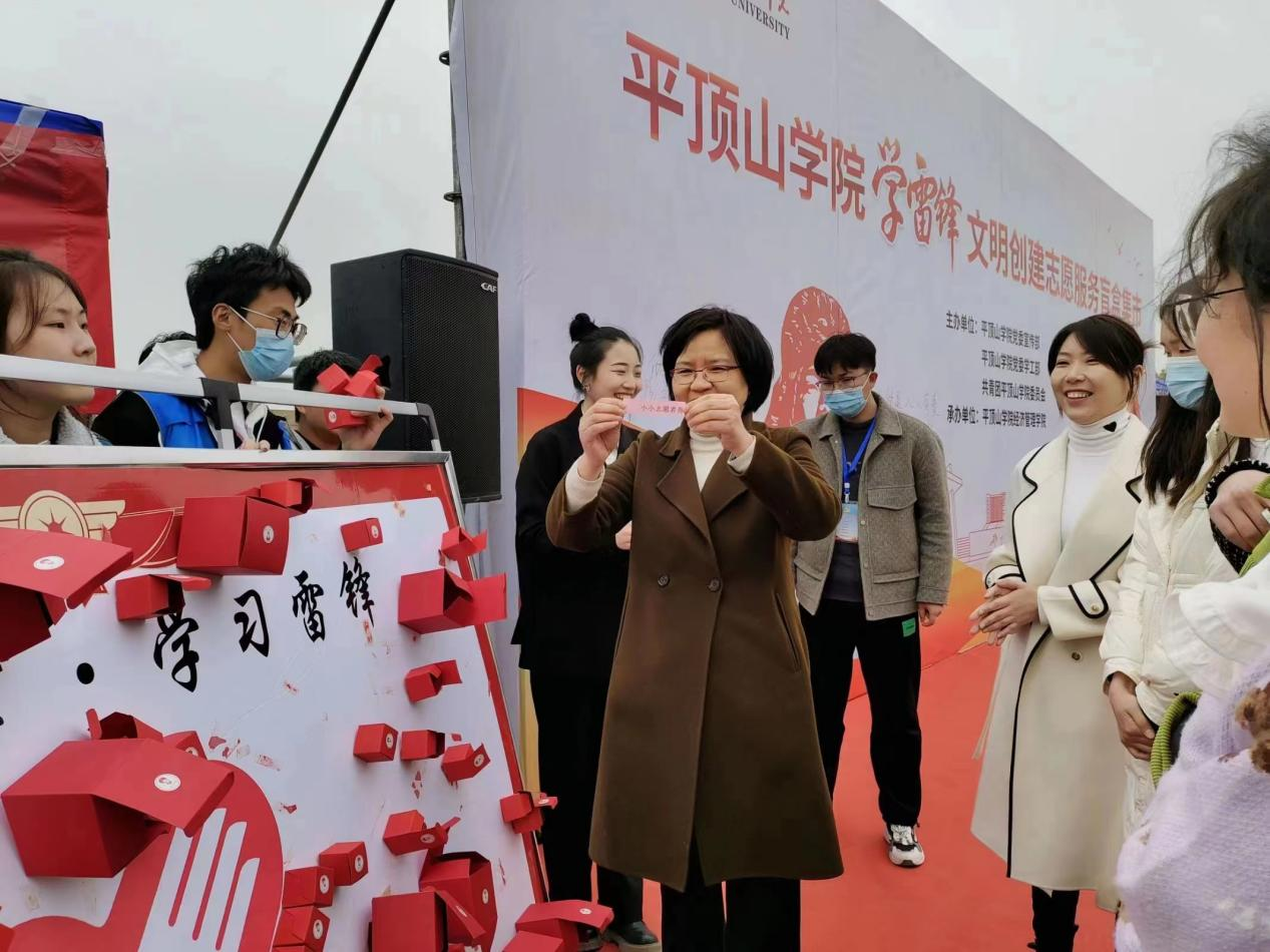 雷锋精神是以雷锋同志的名字命名,以雷锋的精神为基本内涵,在实践中不断丰富和发展着的革命精神。同学们以抽取盲盒领取志愿任务的形式,成为现场的小小志愿者,根据盲盒中的内容可参与到现场设置的志愿服务体验、党员先锋岗、志愿服务宣讲、税收法治宣讲、反诈骗宣讲、技能小课堂、好物置换、我想对雷锋说等二十个环节。此次活动通过寓教于乐的形式,将理论宣讲与趣味活动相结合,与同学们分享理论知识和生活小技能。