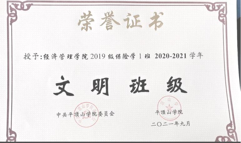 2019级保险学1班河南省文明班级