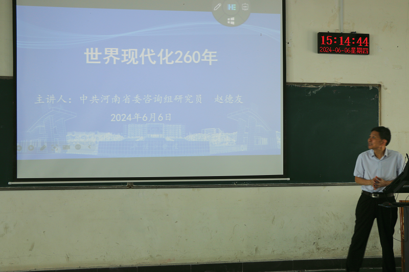 6月6日下午,中共河南省委咨询组研究员赵德友博士应邀到公司作题为《世界现代化26年》的专题辅导报告。beats365官方网站师生代表300余人参加报告会。报告会由beats365官方网站经理张振江主持。