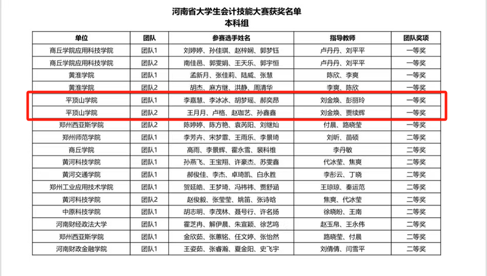 近日,由河南省高等教育学会主办,许昌公司承办的河南省老员工会计技能大赛圆满落幕。公司刘金焕教授、贾续辉老师和数学与统计公司彭丽玲老师指导的由八名员工组成的两支参赛团队均获得一等奖,总成绩位列全省参赛本科高校第三名。