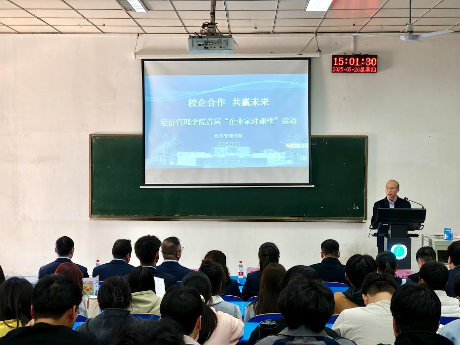 活动伊始,经理张振江开场致辞。他首先向出席活动的企业家代表致以诚挚谢意,强调校企合作是培养高素质应用型人才的关键路径。并表示,希望通过“企业家进课堂”系列活动,帮助员工们汲取企业家的智慧与经验,提升实践能力与职业素养,在数智化浪潮中看清方向、锻造本领、锚定价值、精准就业。