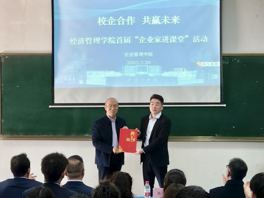 20日下午在1号教学楼1207教室举办首届“企业家进课堂”活动。本次活动邀请到中原证券平顶山分公司总经理王楠、副总经理郑文朝、机构业务经理杜震、投资顾问李政强、上海领瑞金融服务有限公司总经理王亚峰。经理张振江、副经理贺杰以及大数据管理与应用教研室教师代表和2024级大数据管理与应用专业全体员工共同参与,活动由大数据管理与应用教研室主任闫涵主持。