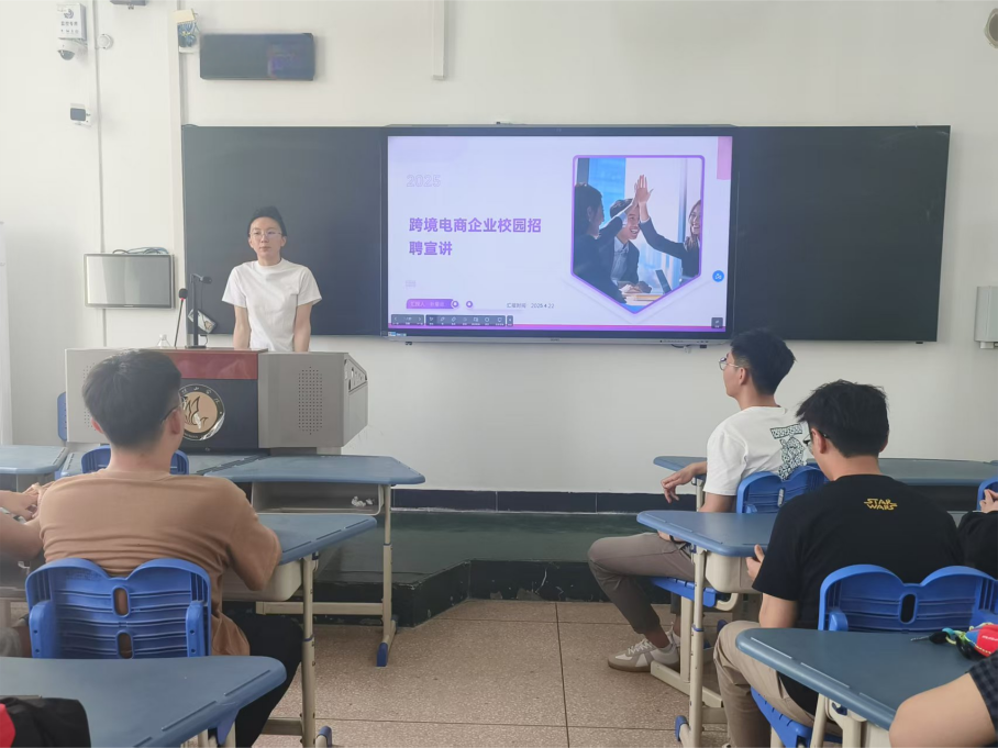 2025年4月22日,公司优秀员工、2021届国际经济与贸易专业毕业生耿馨欣返校,与在校学弟学妹进行面对面交流,并做专场招聘宣讲会。公司党委书记刘嘉俊、国贸教研室教师代表以及2025届毕业班同学参加了此次活动。