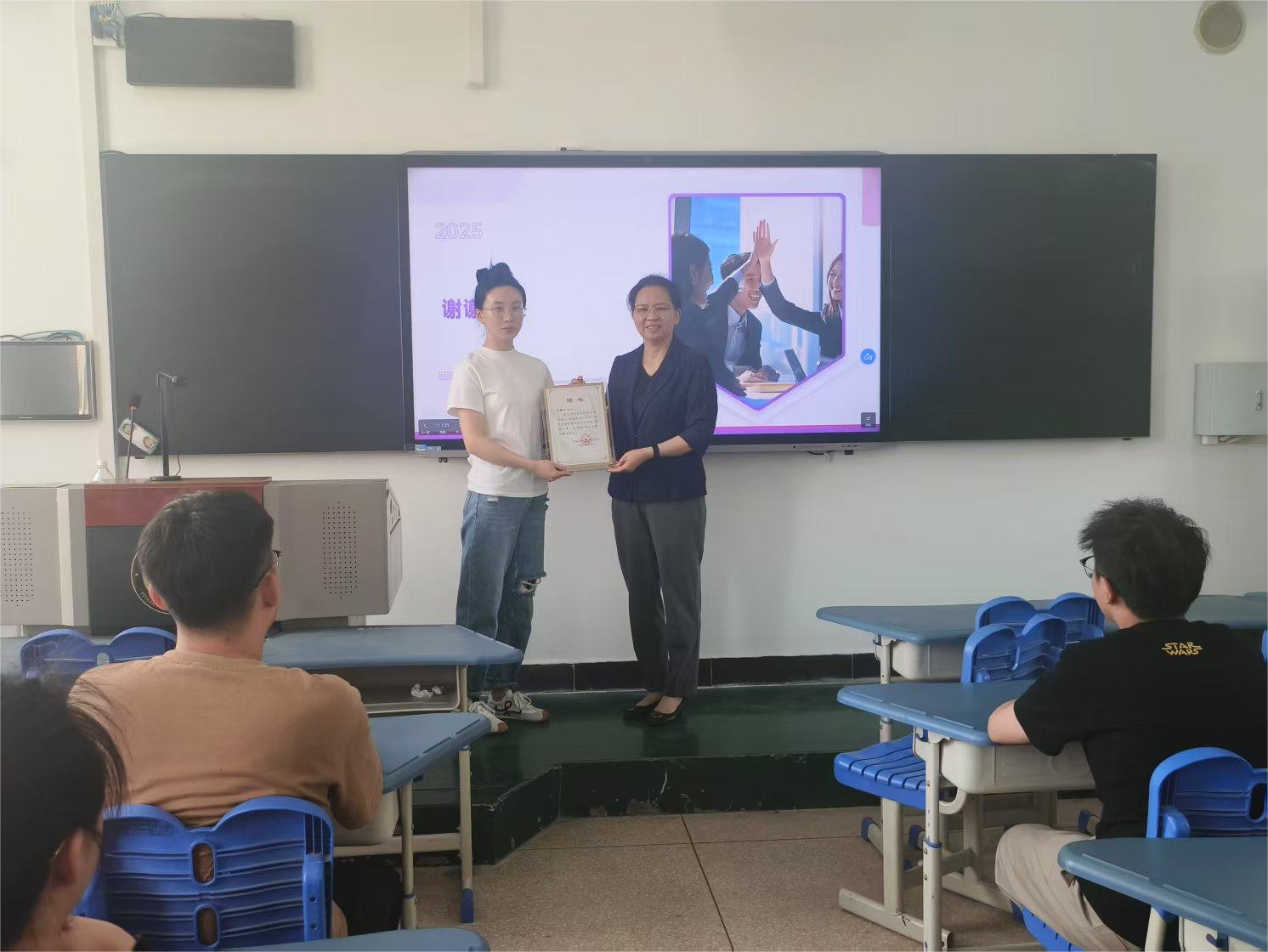 最后,党委书记刘嘉俊进行了讲话。她高度赞扬了耿馨欣自立自强持续创业勇于创新的精神,感谢她对母校发展的关心和支持,并为耿馨欣颁发了公司创业导师聘书。同时希望在校学子要以优秀员工为标杆,主动汲取宝贵经验,大胆尝试,积极参与创新创业计划项目、投身创业大赛,在实践中锤炼创业思维、积累实战经验。