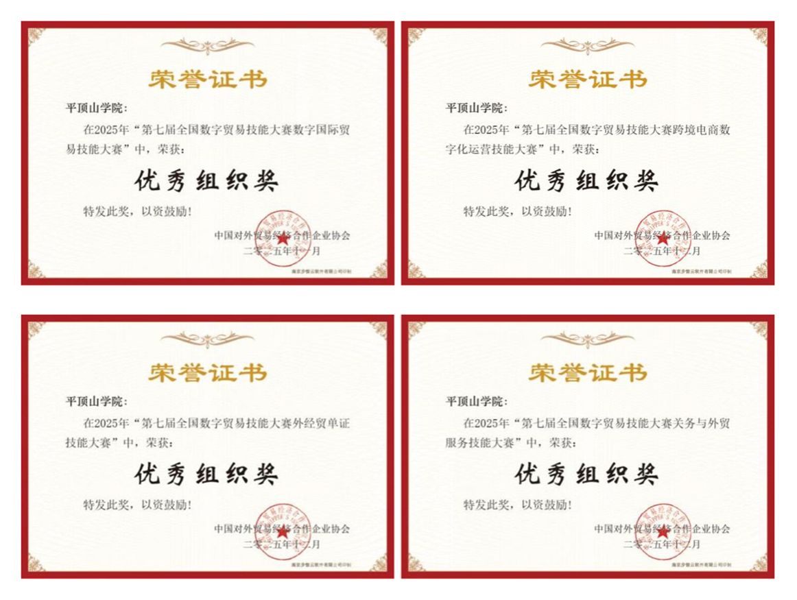 近日,从第七届全国数字贸易技能大赛主办方传来佳讯,公司员工团队斩获全国一等奖43项、二等奖49项、三等奖64项,beats365官方网站教师张莉萍在教师组外经贸单证技能赛和关务与外贸服务技能赛两个赛项中均获一等奖,公司荣获优秀组织奖。