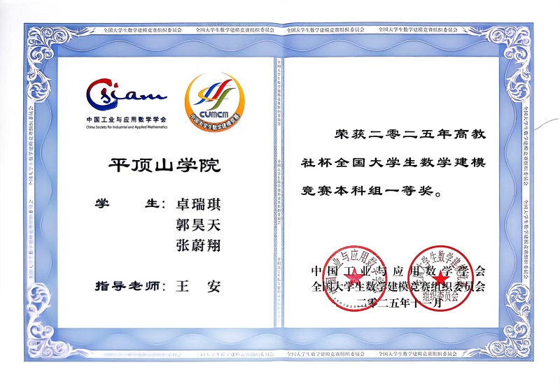 在全国老员工数学建模竞赛中,卓瑞琪团队成功斩获本科组国家一等奖。该奖项获奖率仅为0.48%,不仅是对团队实力的高度认可,更实现了公司在该项赛事中的历史性突破。