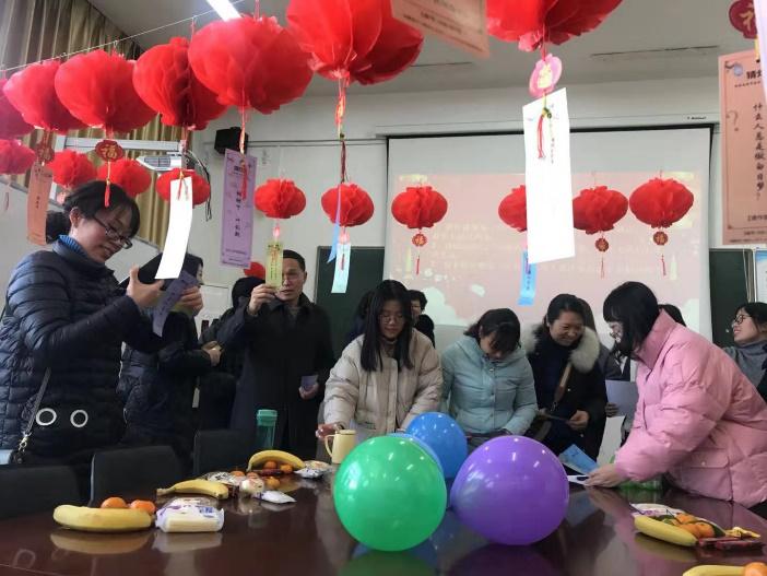 为丰富教职工的文化生活、营造欢乐祥和的节日氛围,增强教职工凝聚力,增进教师间的情感沟通,2020年12月10日下午,beats365官方网站分工会在1410举办了“迎元旦、猜灯谜”活动。