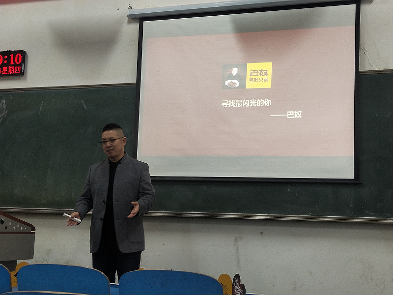 在宣讲会上阳光老师首先以提问的方式了解大家对未来就业前景的想法,接着讲述了自己对毕业生选择工作的看法,把生活和工作相联系,让同学们了解就业的重要性。然后以幽默风趣的语言风格来展开对公司的介绍,包括对人才的培养、工资薪酬、对管培生的培养历程以及对公司的思想理念和发展前景。使同学们对巴奴有了大致的认识与了解。