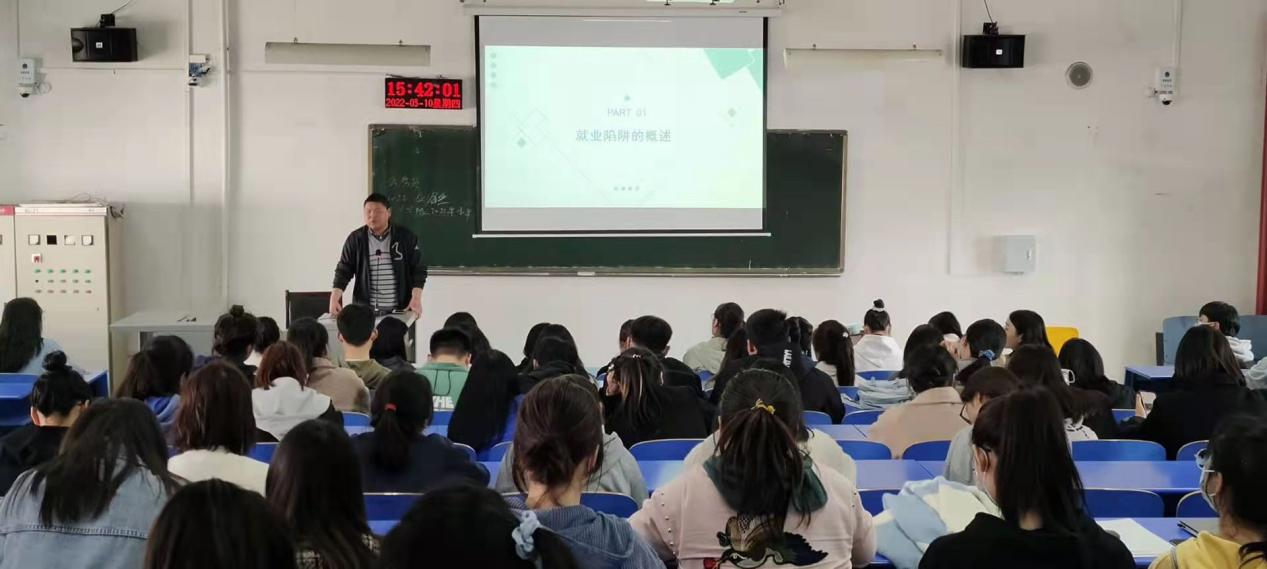 为进一步增强毕业生提高自身就业防范意识,更好地在求职路上规避陷阱,少走弯路,3月10日下午在1406教室举行了“就业陷阱”主题就业指导讲座,由2018级辅导员张增辉担任主讲人,部分应届毕业生参加了本次讲座。