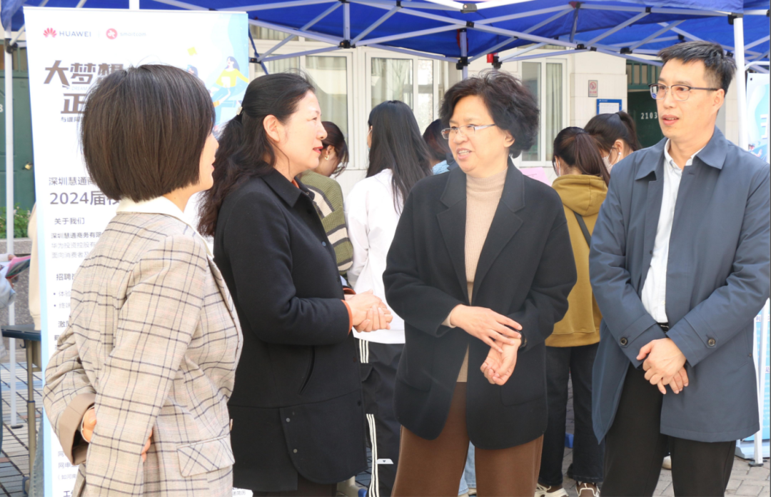 双选会现场,程永华一行到场进行观摩指导,与参会企业负责人和毕业生进行交流,了解用人单位人才需求意向、毕业生就业表现等情况,鼓励毕业生及早定位就业去向。