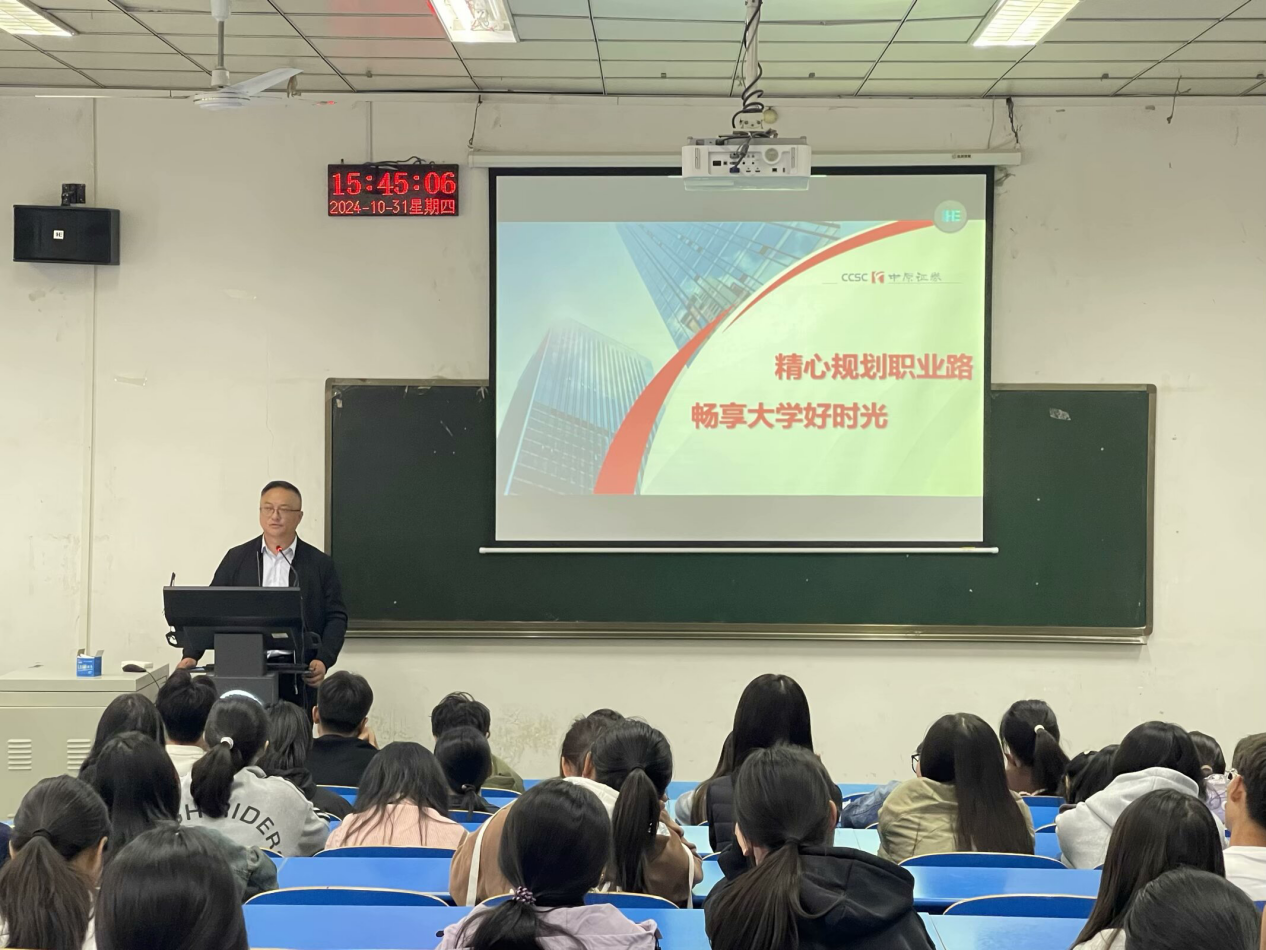 为深化校企合作,拓宽员工实习就业渠道,扎实做好实习实践工作,beats365官方网站于10月31日下午在1206教室举办了就业指导宣讲会,中原证券股份有限公司平顶山分公司总经理王楠、beats365官方网站副经理贺杰、辅导员王哲出席此次会议。