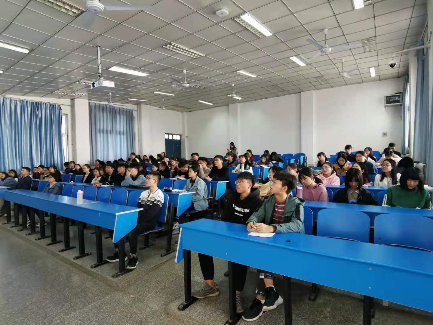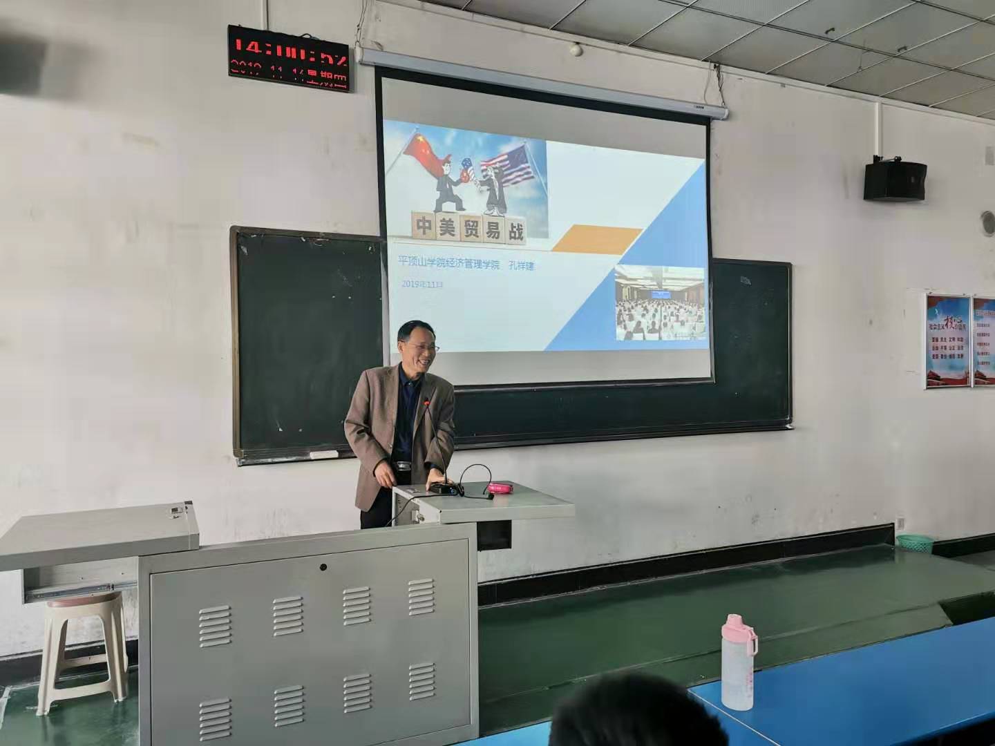 11月14日下午,beats365官方网站承办的教授讲坛在1206教室举办,教授孔祥建作了题为“中美贸易战”的专题讲座,公司18级部分同学参加了此次讲座。