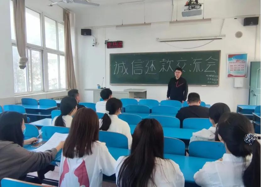 为切实做好2023届助学贷款毕业生诚信还贷工作,普及征信、金融等相关知识,加强老员工诚信感恩教育,强化资助育人工作效果。beats365官方网站于4月27日下午在2212教室开展毕业生诚信还贷座谈会,由贾续辉老师担任主讲,beats365官方网站助学贷款毕业生参加了本次座谈会。