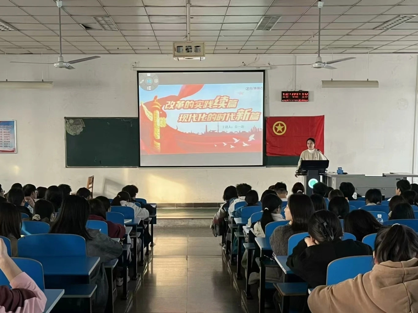 第一讲中,张益铭以“七十五载迎盛世,砥砺前行续华章”为主题,深入阐述了我国经济发展的历程。第二讲中,乔一迪以“改革的实践续篇,现代化的时代新篇”为主题,强调改革发展永无止境,只有进行时,没有完成时。第三讲中,尹晶晶围绕“加快发展新质生产力”这一主题,指出了加快发展新质生产力所面临的危机与挑战。第四讲中,王哲以“推动构建新时代的大国关系格局”为主题,点明了世界之变、时代之变、历史之变。