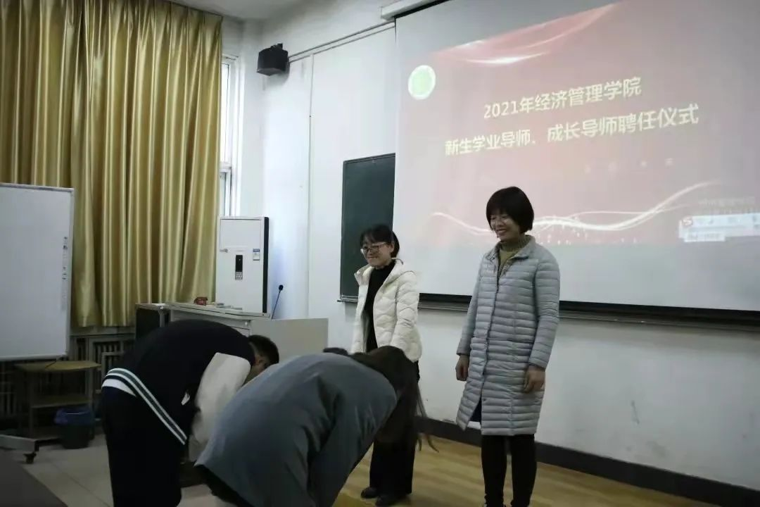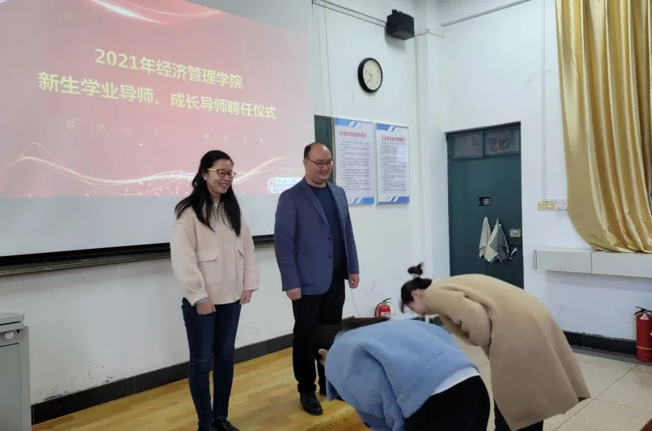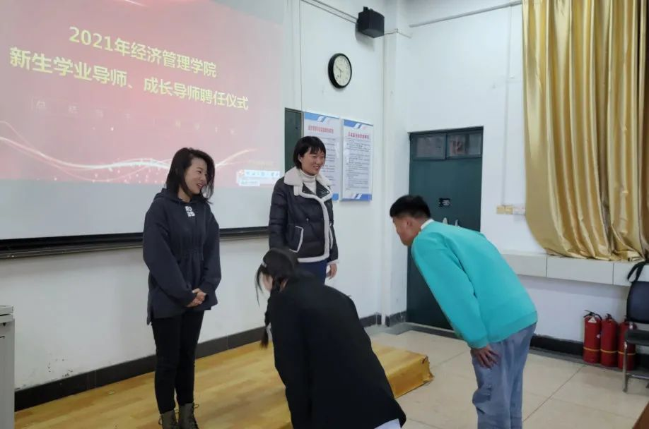 员工代表对学业导师、成长导师行拜师鞠躬礼。