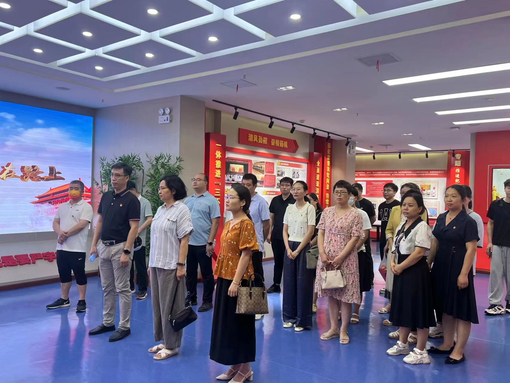 在讲解员的引导下,大家有序参观了“高扬的旗帜 奋进的号角”“严厉的惩戒 沉痛的代价”“扭曲的心灵 畸形的人生”“立时代潮头 踏崭新征程”四个展区,本次教育活动给在场的全体人员强烈的震撼和深刻的警示,从中感受到党加强自身建设、永远吹冲锋号的坚定决心。最后,全体人员在中国共产党入党誓词展示墙前集体重温入党誓词。